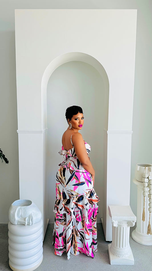 Tropical Fest Pleated Maxi Dress